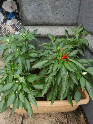 昨年に引続き、新宿の名産「内藤とうがらし」を町内の方々が店先で育てています。