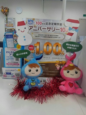 “100周年記念定期預金「アニバーサリー100」” は、販売枠300億円に到達し、おかげさまをもちまして、2026年3月11日に販売を終了いたしましたのでお知らせ申し上げます。